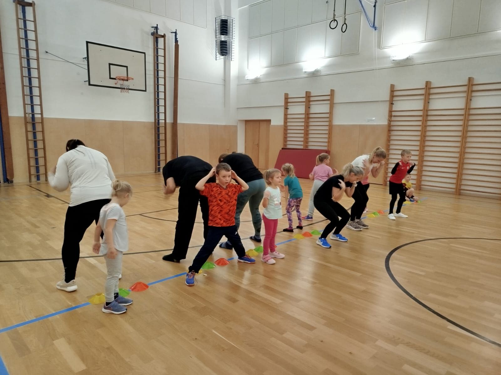 Hlavním tématem byl tentokrát běh – mladší děti sportovaly s rodiči v tělocvičně a starší vyrazily společně na hřiště u ZŠ.