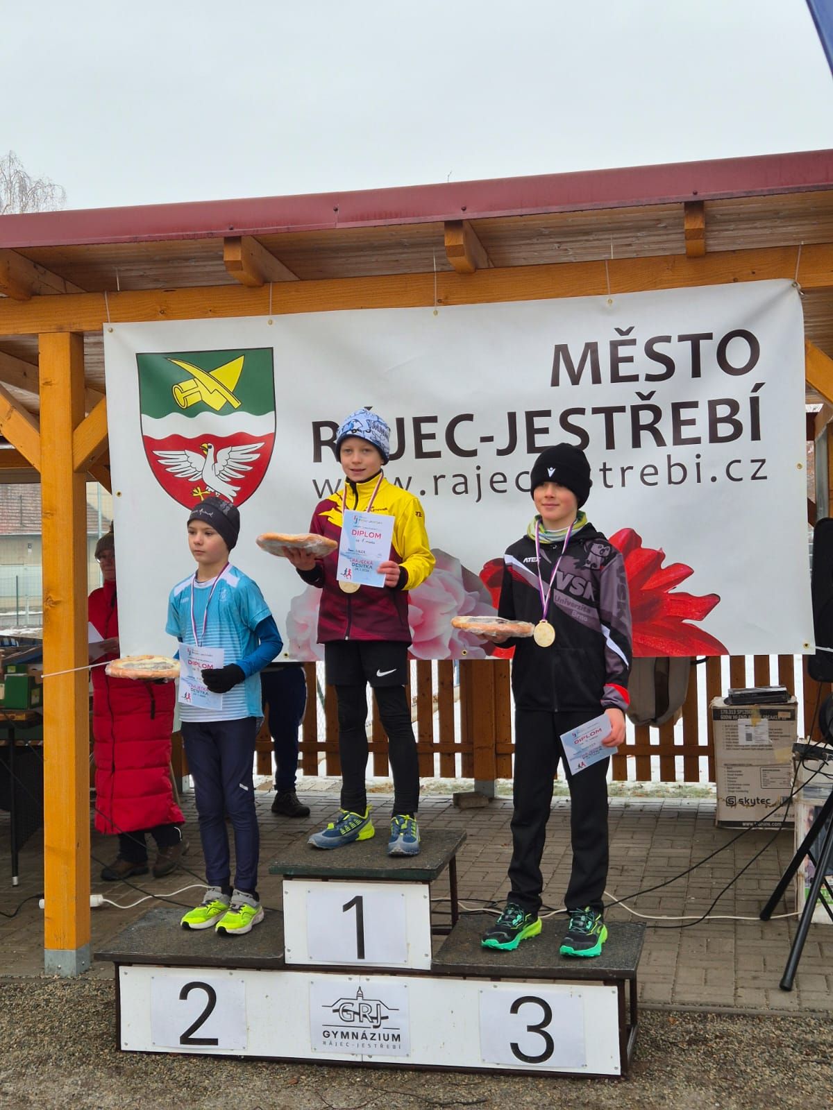 V sobotu 24. 1. 2026 pokračoval v Rájci‑Jestřebí pátým závodem seriál Brněnský běžecký pohár. Díky skvělému výkonu Adama Holka si odvážíme zlatou medaili 🥇 v kategorii mladších přípravek.