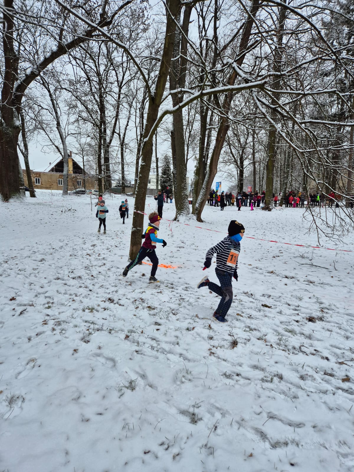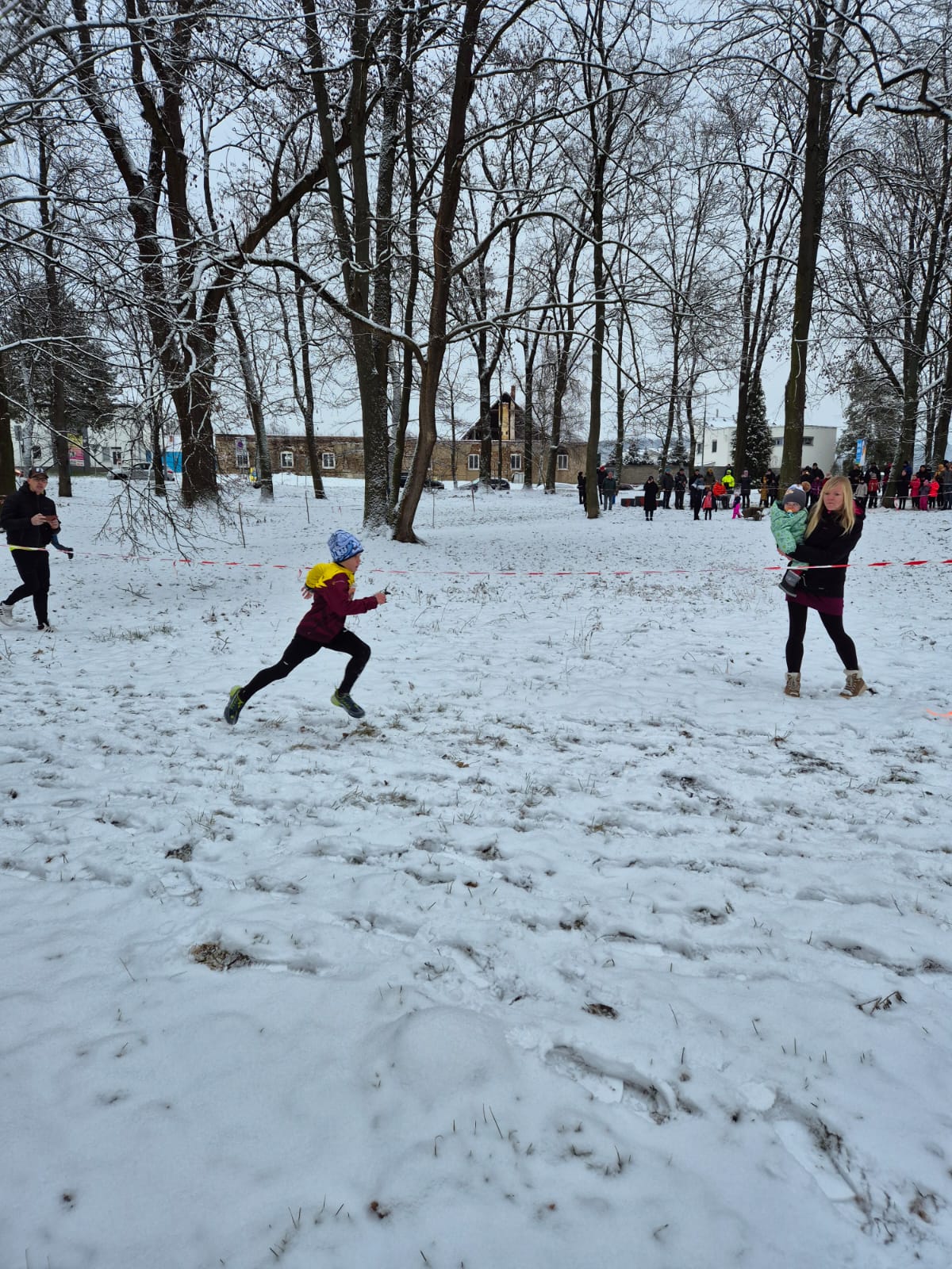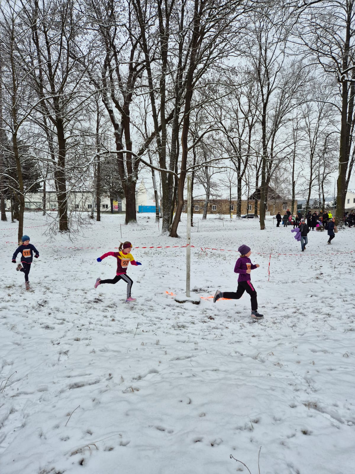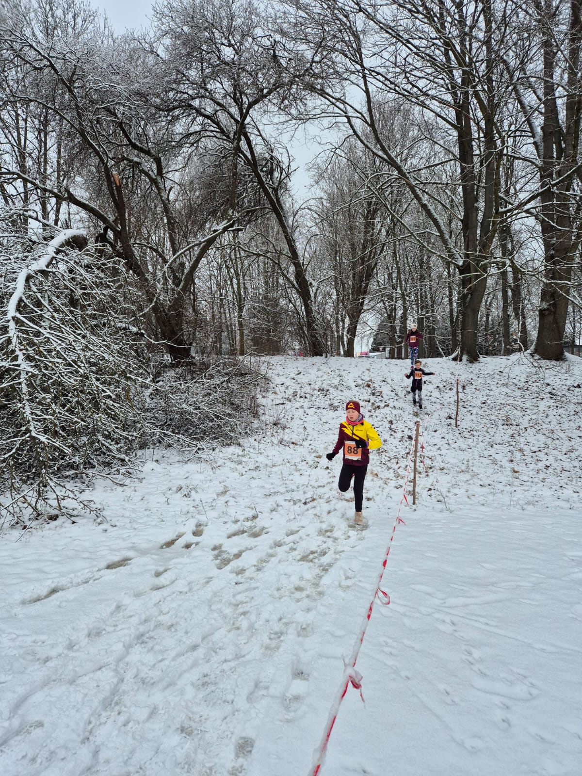 Šest odhodlaných atletů se postavilo na start v těžkém, zasněženém terénu, kde závod připomínal pravý kros 💪❄️🏃♀️